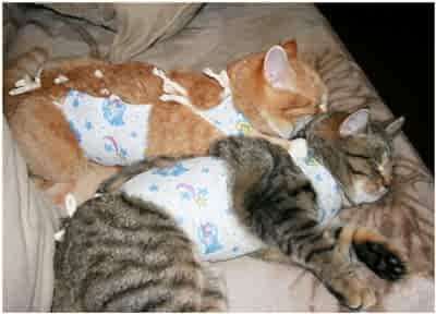 Пинап после стерилизации должна питаться специальной едой. Но на такую диету стоит переводить животное постепенно, в течении 2 месяцев. Также, часто требуется специальная попона для кошки после стерилизации.